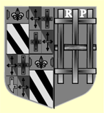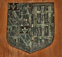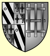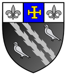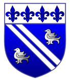 Sa. Two bendlets raguly betw. as many hawks ar. Two fleur-de-lis