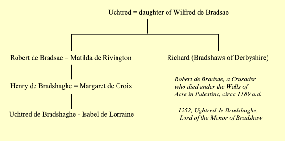 Her husband from his name is supposed to have been a descendant of the Bradshaghs of Bradshaw, near Turton.